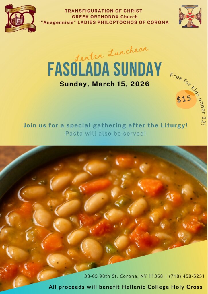 Lenter Luncheon – Join us for a special gathering after the Liturgy! Pasta will also be served (free for kids under 12 years old).
