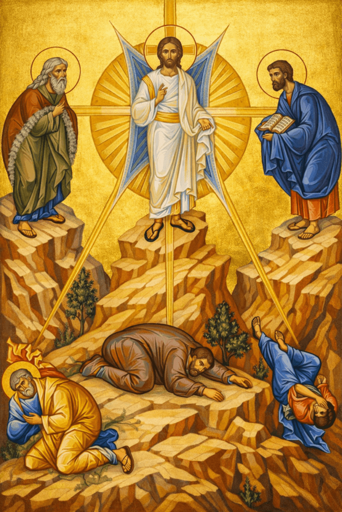 A glimpse of Christ’s divine glory revealed to His disciples on Mount Tabor.